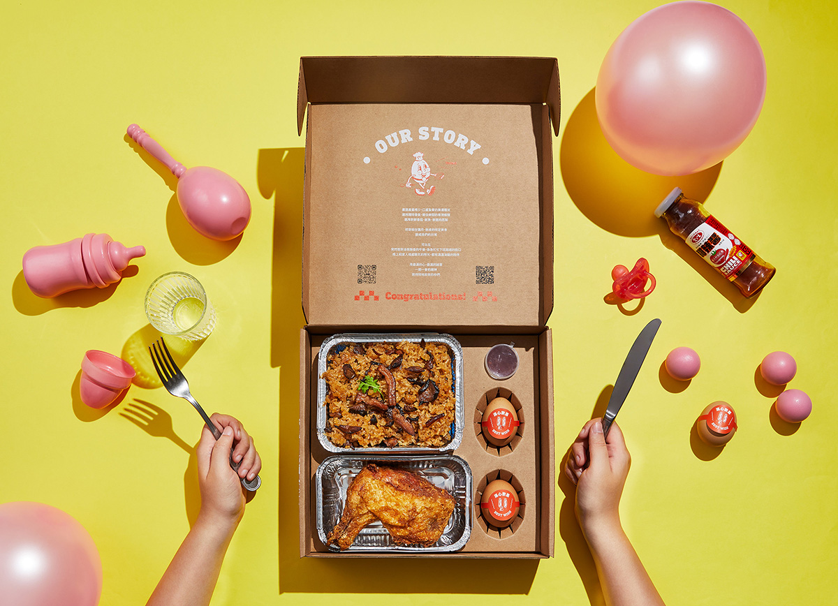 在包装设计上,我们跳脱过往油饭产品在包装结构上采取简便处理的框架,将“新手组合包-rookieset“的概念带入结构设计当中,让这份产品除了是传统文化中祝贺新生